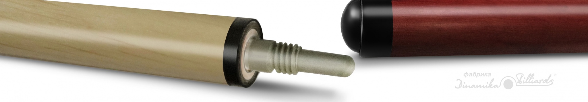 Для изготовления шафта практически во всех моделях бильярдных киев используется только высококачественный граб. Это жесткое по структуре и в то же время эластичное дерево идеальным образом подходит для изготовления данной части инструмента. Материалы, используемые для турняков, довольно разнообразны. В отделке дорогих моделей применяются ценные породы дерева – палисандр, венге и эбен. Для серийных моделей используются такие классические сорта как амарант, падук, лайсвуд, ятоба, «черный граб». В двусоставных киях установлены специальные замки из прочного полимерного материала – собственная разработка Фабрики. Соединяя турняк и шафт, эта деталь обеспечивает идеальную скрутку, а также участвует в процессе замедления энергии, гася колебания, идущие в тыльную часть турняка, где уже находится груз. Использование цельного лепестка без склейки в построении кия обеспечивает стабильность, прочность, устойчивость изделия к искривлению.