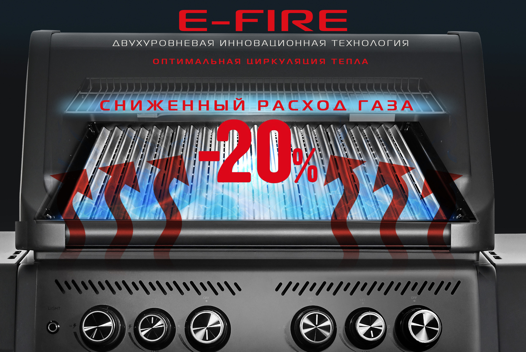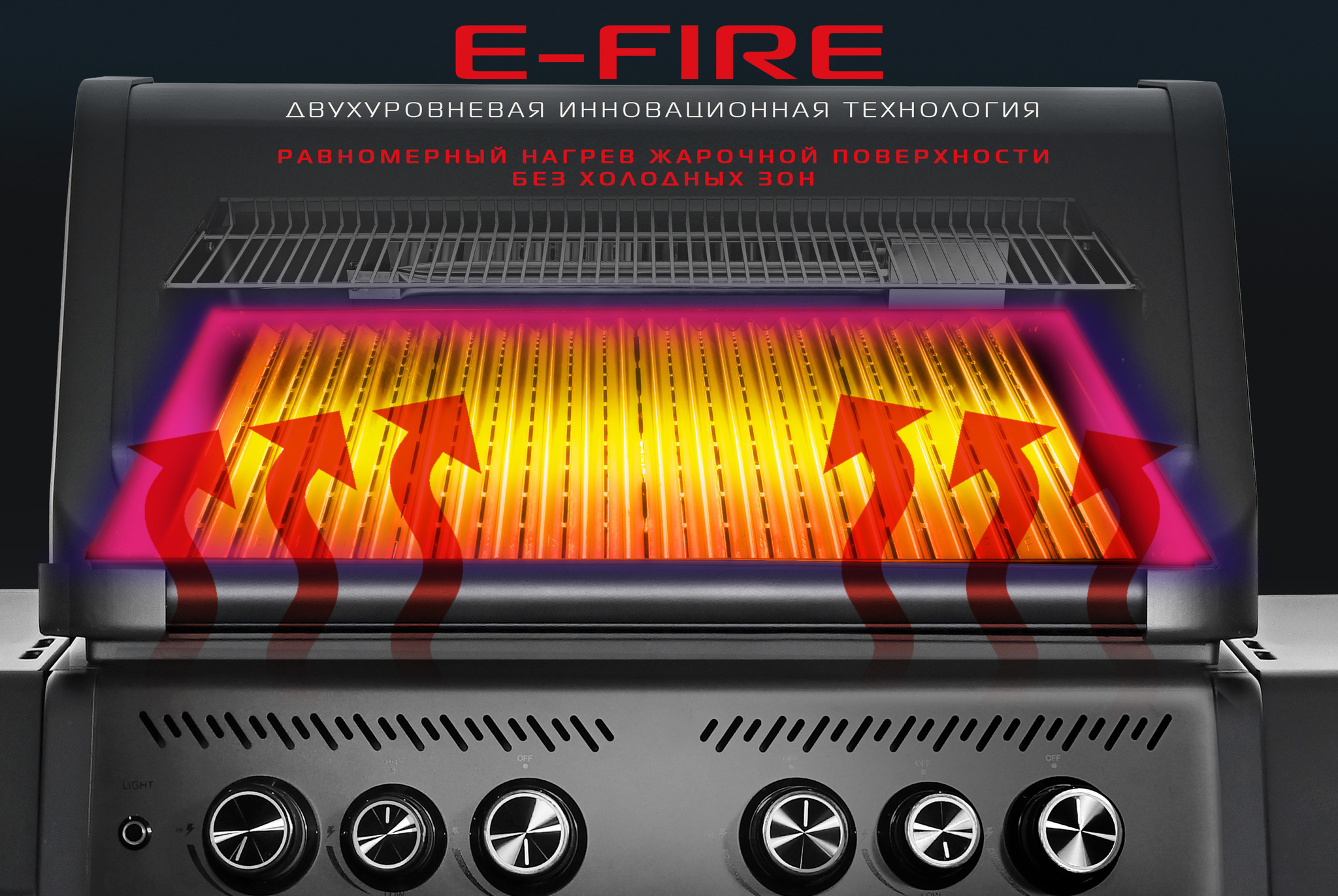 Складные столики, корзина для специй и соусов, подсветка ручек, система жароотсекателей E-Fire