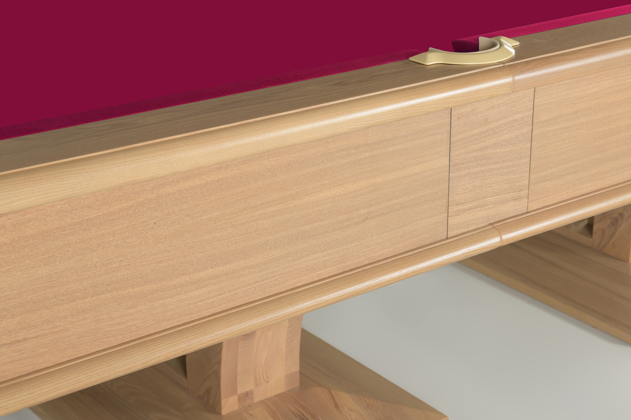 У столов с металлическим каркасом идеальный по устойчивости лафет. Он обеспечивает неподвижность конструкции на протяжении всего срока эксплуатации, тем самым позволяя игрокам добиться максимально точного отскока шара.