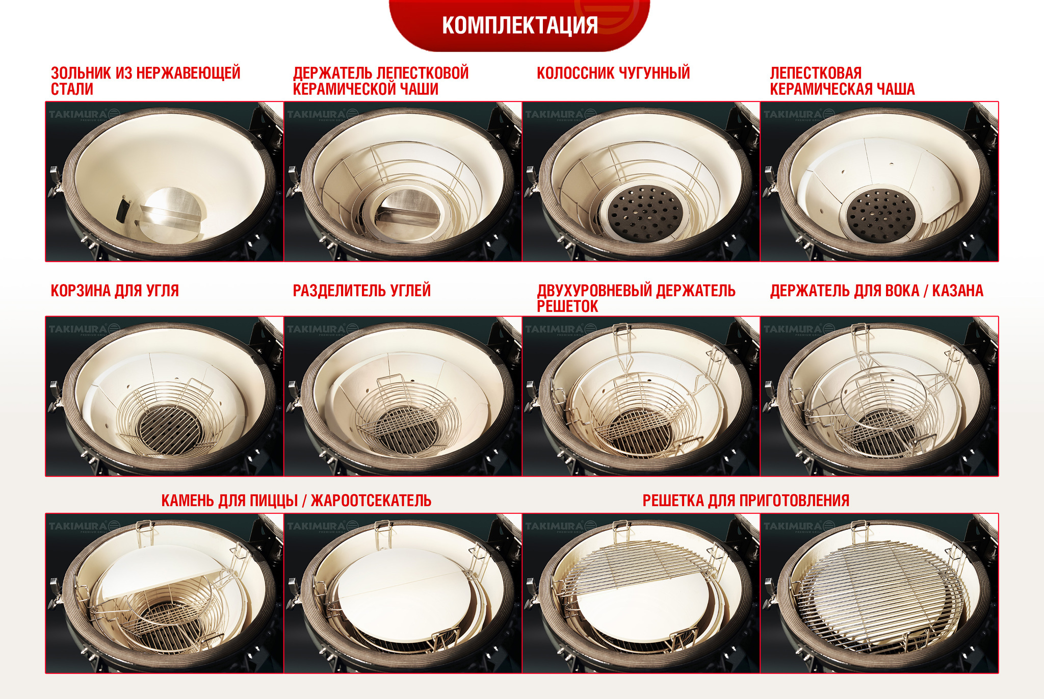 Керамический гриль Takimura — совершенство вкуса и технологий Погрузитесь в мир изысканного кулинарного искусства с керамическими грилями премиальной серии Takimura — воплощением элегантности и передовых технологий, созданных для тех, кто ценит аутентичный вкус блюд, приготовленных на углях. Каждый гриль серии Takimura — это не просто устройство, а настоящий шедевр, сочетающий в себе японские традиции и инновации, который открывает новые горизонты для кулинарных экспериментов. Керамический гриль Takimura — это высокотехнологичное устройство, обеспечивающее бескомпромиссное качество приготовления блюд и универсальность использования. Каждый гриль Takimura проходит индивидуальный контроль качества. Приобретая гриль Takimura, вы можете быть уверены в том, что получаете не только стильный, но и надежный инструмент для приготовления изысканных блюд. Каждый гриль имеет серийный номер, что подтверждает эксклюзивность и высокие стандарты производства. Takimura в графитовом цвете представляет собой истинное произведение искусства, гармонично соединяющее в себе функциональность и эстетическую привлекательность. Элегантные линии корпуса, обрамленные легким блеском керамики и графитовый цвет придает устройству глубину и характер, позволяя ему органично вписываться в любой интерьер — от уютного загородного домика до профессиональной кухни. Гриль Takimura - идеальный выбор для большой семьи или дружной компании, чтобы наслаждаться BBQ шедеврами вместе. Гриль-мечта для самых больших компаний, на котором можно приготовить огромные порции! Корпус гриля из сверхпрочной керамики нового поколения гарантирует долговечность и отличные теплоизоляционные свойства. Высококачественные материалы и передовые технологии открывают безграничные возможности для приготовления разнообразных блюд, превращая ужин в гастрономическое событие. Система подъема крышки с автоматической фиксацией купола в любом из доступных положений обеспечивает удобство и безопасность использования гриля. Армированный термостойкий уплотнитель обладает высокой огнеупорностью и термической стойкостью, что повышает теплоизоляцию и устойчивость к износу. Гриль оснащен трехуровневой системой решеток. Верхняя решетка выполняет функцию гриля, средняя служит подставкой для вока, казана или камня для пиццы, нижняя - керамический жароотсекатель, который обеспечивает равномерное распределение тепла. Чугунный регулятор тяги позволяет точно настраивать интенсивность жара, а водонепроницаемый термометр профессионального уровня обеспечивает контроль температуры, что особенно важно для достижения идеального результата. Мобильная подставка с колесами, оснащенными фиксаторами, выполнена из стали, что гарантирует высокую надежность и легкость перемещения гриля. Подставка оснащена стальной полкой для удобного размещения аксессуаров и кухонной утвари. Складные боковые столики с ос...