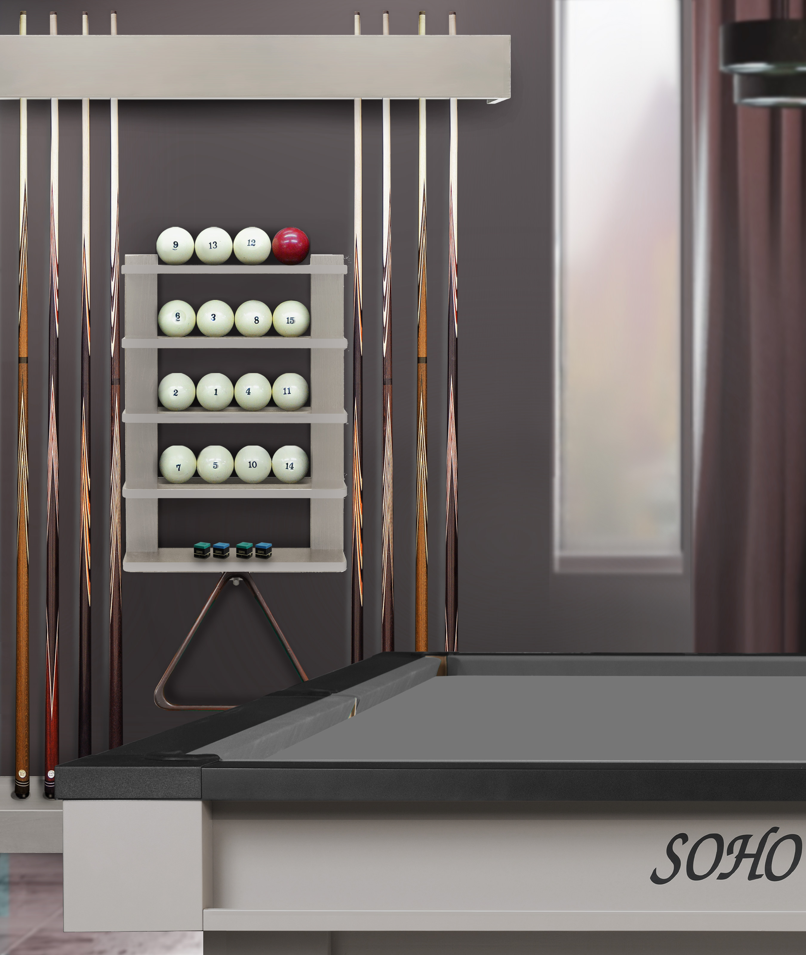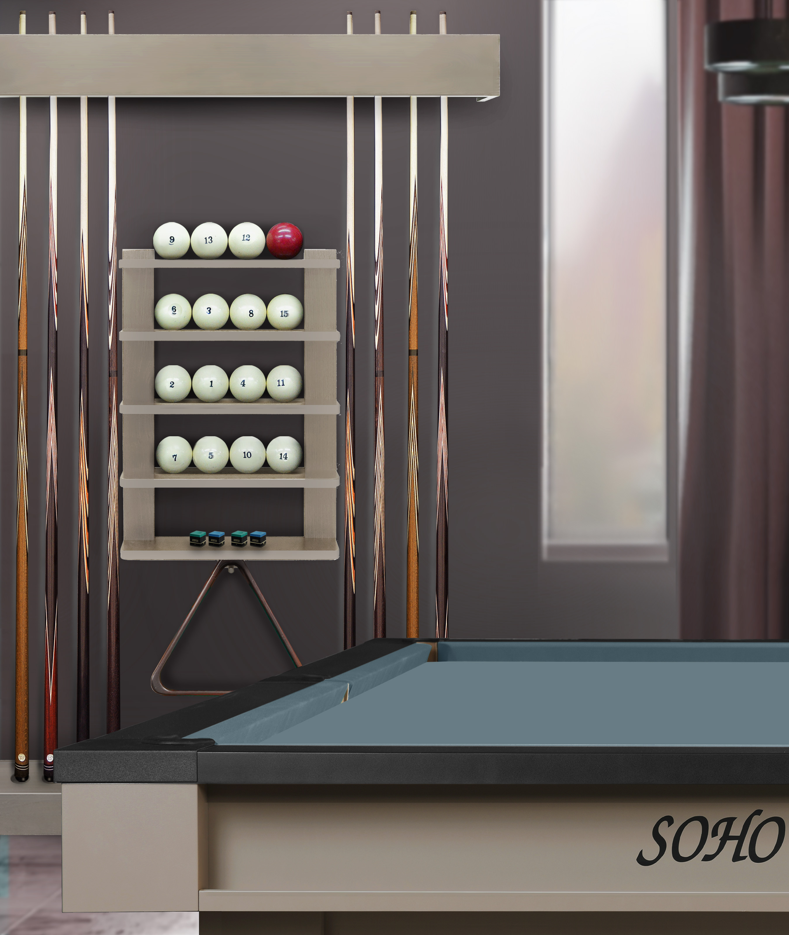 Киевница «Фрейм» — это элегантное и практичное решение для хранения бильярдного инвентаря. Сочетание натуральных материалов и продуманной конструкции делает её не просто аксессуаром, а стильным элементом интерьера игровой комнаты, бара или гостиной. Модель выполнена из высокопрочной древесноволокнистой плиты и сосны в лаконичном дизайне и акцентом на точной геометрии. Такое сочетание материалов делает изделие легким, но исключительно прочным. Конструкция модели позволяет настроить положение составных частей и общий размер киевницы под индивидуальные пожелания владельца. Благодаря настенному размещению киевница не занимает игровое пространство, при этом вмещает всё необходимое: 8 киев, полный комплект шаров, треугольник и мелкие аксессуары. Модель доступна в широкой гамме цветов — от светлых натуральных оттенков дерева до плотного современного покрытия эмалью из коллекции SOHO. Идеально подойдет для ценителей бильярда, владельцев домашних игровых комнат, баров, клубов, отелей и корпоративных пространств, где важны порядок, стиль и функциональность. Сделайте игровую зону безупречно организованной и эстетически привлекательной с киевницей «Фрейм»!