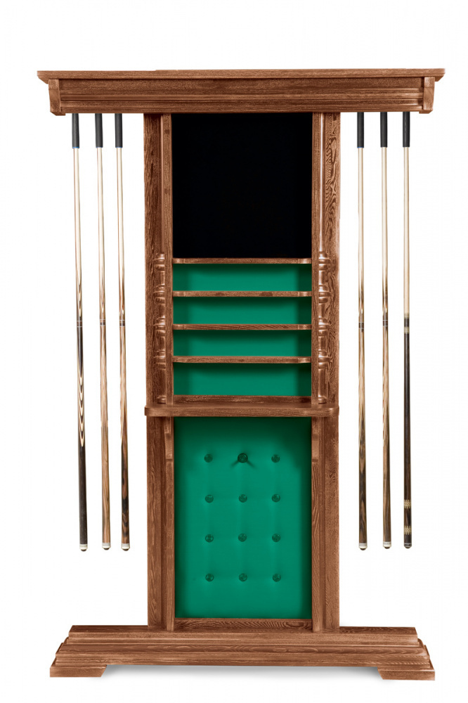 Модель напольная, предназначена для 6 киев, позволяет разместить треугольник, мелки, а также бильярдные шары. Материал массив ясеня / клен. Есть возможность выбрать цвет из палитры Фабрики «Старт» Количество киев: 6 Высота: 2200 мм Ширина: 1460 мм Материалы: ясень или клен Глубина: 205 мм Вес: 88 кг