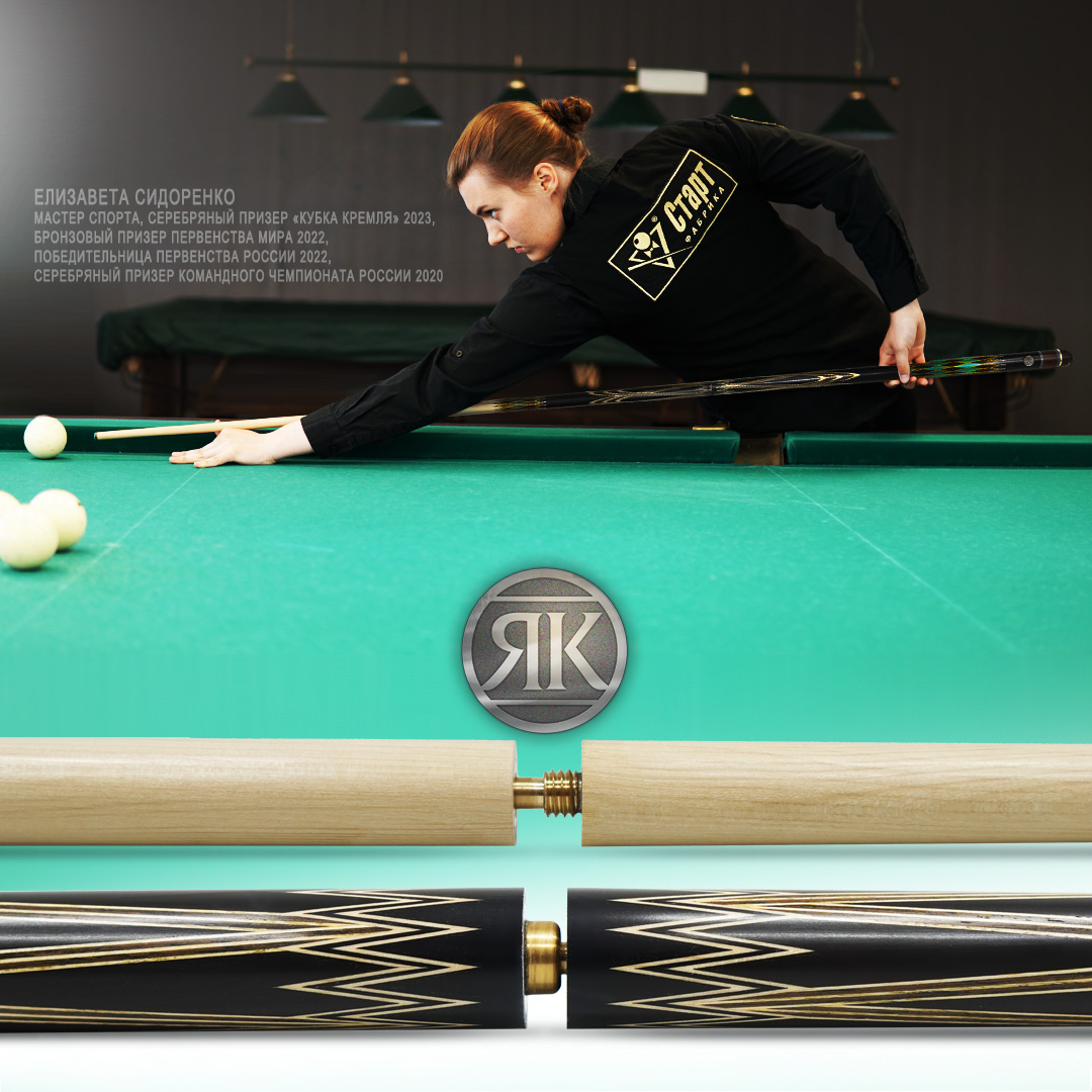 Кий Мастера Якубович «Алмаз» - трехсоставный кий ручной работы для игры в русскую пирамиду. 5 ювелирных запилов в виде путины выполнены из белого граба, отбеленного ясеня и черного абрикоса. Элегантный узор из 23 звезд и 5 ромбов придают необыкновенную привлекательность изделию. Шафт кия «Алмаз» из белого граба создает идеальный симбиоз мощности, точности и изысканного вкуса. В комплектацию кия входит оригинальная наклейка TAO-MI, которая производится вручную из отборной 100% кожи буйвола с использованием только натуральных и безвредных материалов. В производстве TAO-MI применяется специальный высокотехнологичный процесс склеивания слоев, который делает структуру наклейки максимально однородной. Замок кия «Алмаз» сочетает в себе передовые инженерные решения для достижения максимальной фиксации частей кия и состоит из вакуумной втулки и карбоновых колец. Кий уникален тем, что создается Мастером высокого класса на оснащенной производственной базе Фабрики «Старт». Кии Якубович объединяют ручную работу и передовые технологии бильярдного производства, что в купе дает красивое авторское изделие высоких игровых характеристик, которое всегда есть в наличии для наших покупателей. Граб: наиболее широко распространен в Европе, Малой Азии и Иране. Древесина блестящая, тяжелая, вязкая. Плотность 750 кг/м (куб). Твердость по Бринеллю 3,5. Абрикос: альтернативный, менее распространённый вариант. Древесина абрикоса более однородная, ее плотность составляет около 770-850 кг/м³, а твёрдость по Бринеллю порядка 2.5-3.0. Это даёт более «мягкий», собранный удар с особым ощущением шаров. Ясень: классический и самый распространённый материал для киев. Ценится за идеальный баланс прочности и гибкости. Древесина ясеня имеет плотность около 680-750 кг/м³ и твёрдость по Бринеллю примерно 4.0-4.1. Такие показатели обеспечивают выраженную упругость, мощный, чёткий удар с хорошим отскоком и контролем. Волокнистая структура придаёт дополнительную устойчивость к излому.
