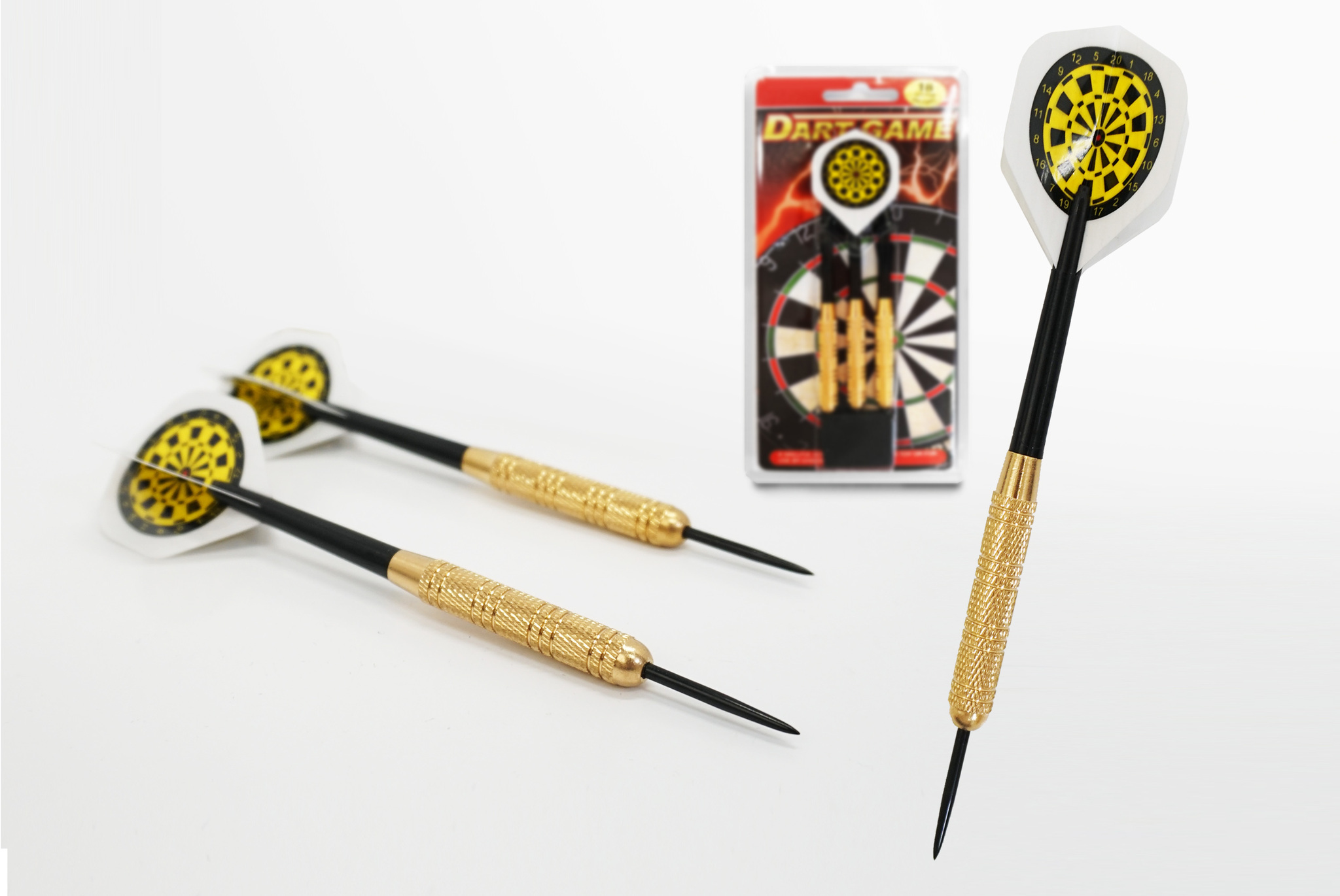 Дротики являются важнейшим элементом для игры в дартс, отnbsp;nbsp;напрямую зависит уровень и качество игры. Комплект дротиков для игры в дартс среднего уровня. Комплект состоит из 3 дротиков весом 18 гр, баррель которых изготовлен из латуни. Латунные дротики являются общедоступным инструментом как для любителей, так и для профессианалов. Пластиковые хвостовики в сочетании с оперением отлично выравнивают дротики в полете. Стальные иглы легко и устойчиво “входят” в мишень. Комплект состоит из 3 баррелей, 3 хвостовиков, 3 оперений. Разборная конструкция дротиков позволяет заменить его хвостовик и оперение по мере изнашивания оборудования.