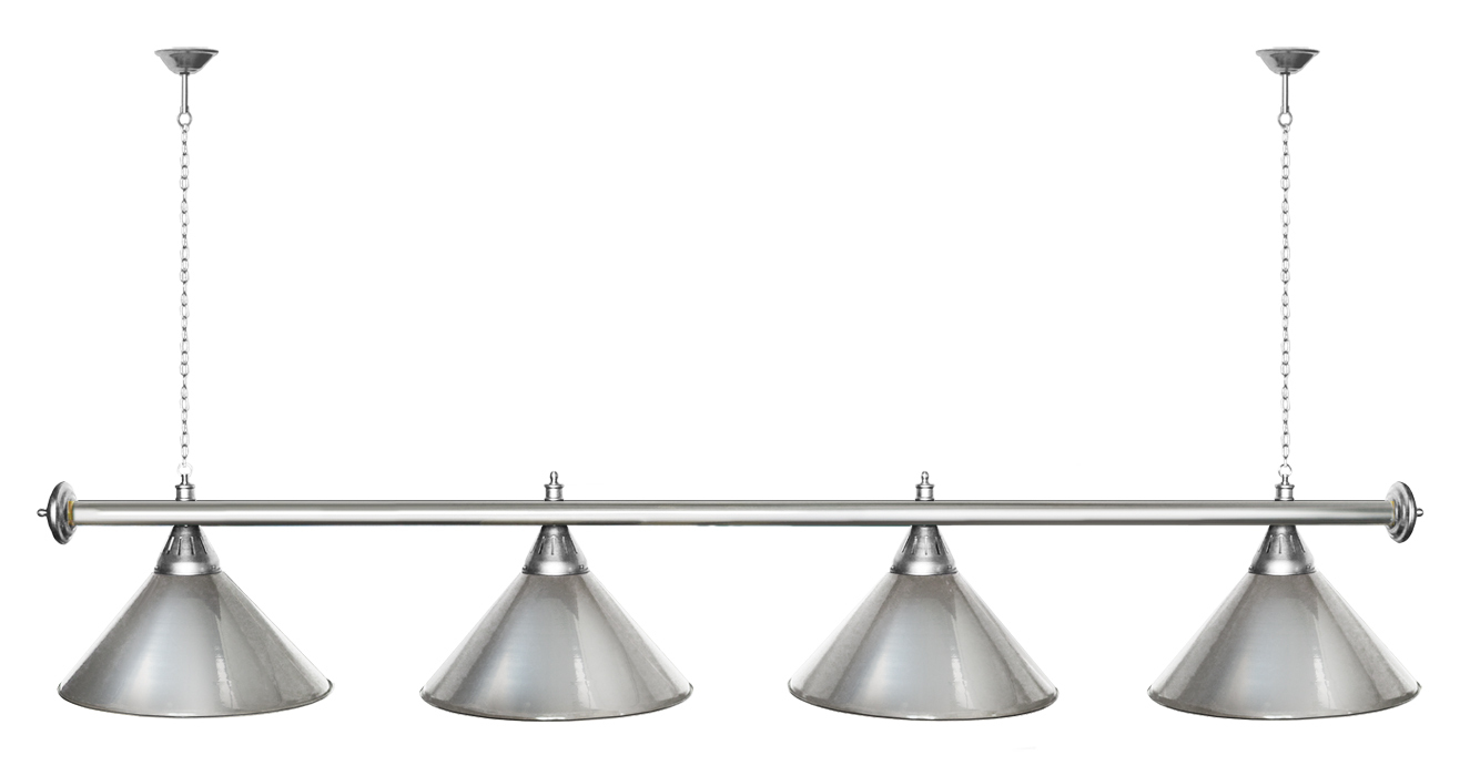 Светильники Startbilliards производства ФС «Горизонт» с 4-мя плафонами комплектуются к столам 8 и 9 футов. Укомплектованы цельной металлической штангой с полимерным покрытием. Штанга изготовлена из цельной трубы, что исключает искривление конструкции. Применение керамических патронов #40;Е27#41; увеличивает срок эксплуатации светильника. Металлические плафоны крепятся с помощью зажимных пластин. Длина подвесной цепи 100 см — оптимальное расстояние для расположения источника света над игровым полем стола. В комплект включены две потолочные чашки диаметром 10 см. Штанга и плафоны поставляются в отдельных упаковках. Условные схематические обозначения: Н — общая высота светильника / 1420 мм L — общая длина светильника / 1920nbsp;nbsp;мм D — высота плафона / 300 мм d — диаметр плафона / 370 мм C — расстояние между осями / 500 мм Штанга и плафоны поставляются в отдельных упаковках.