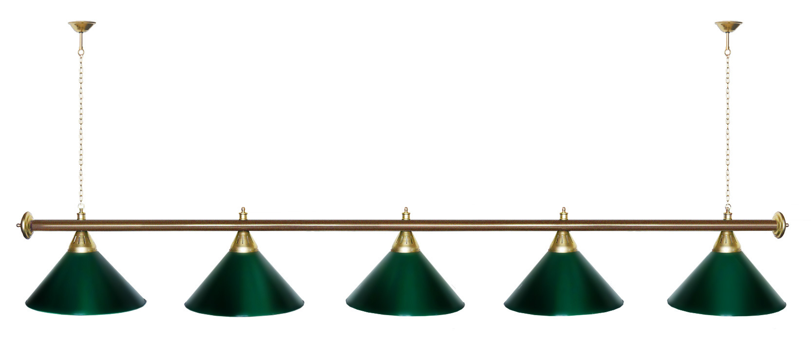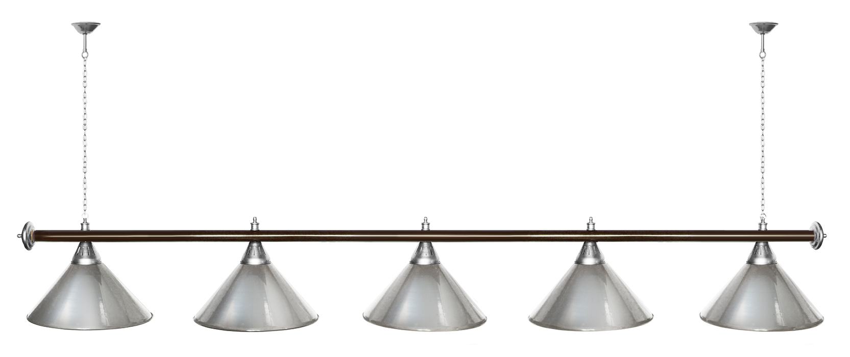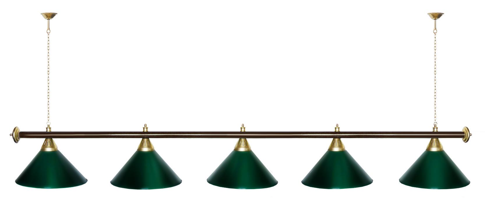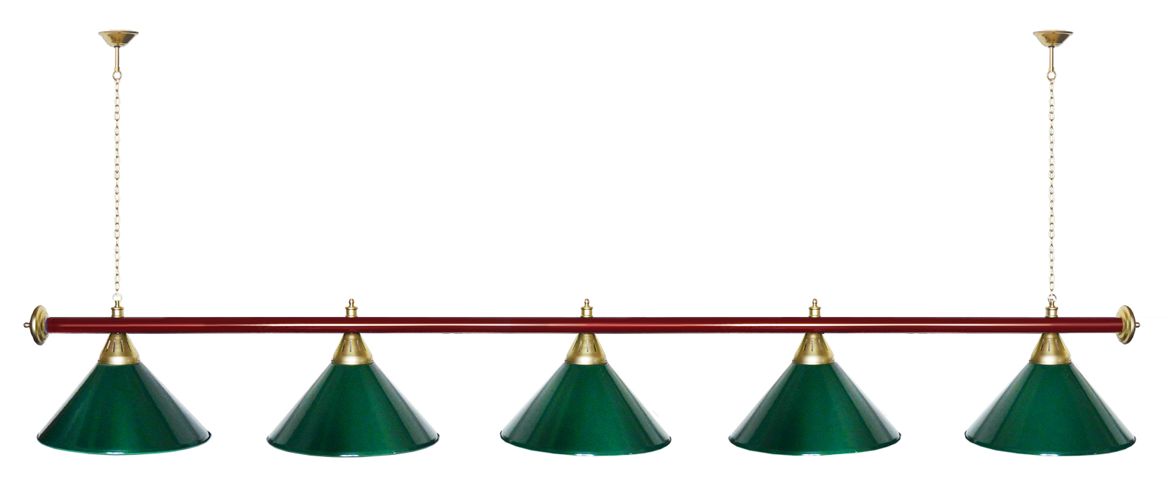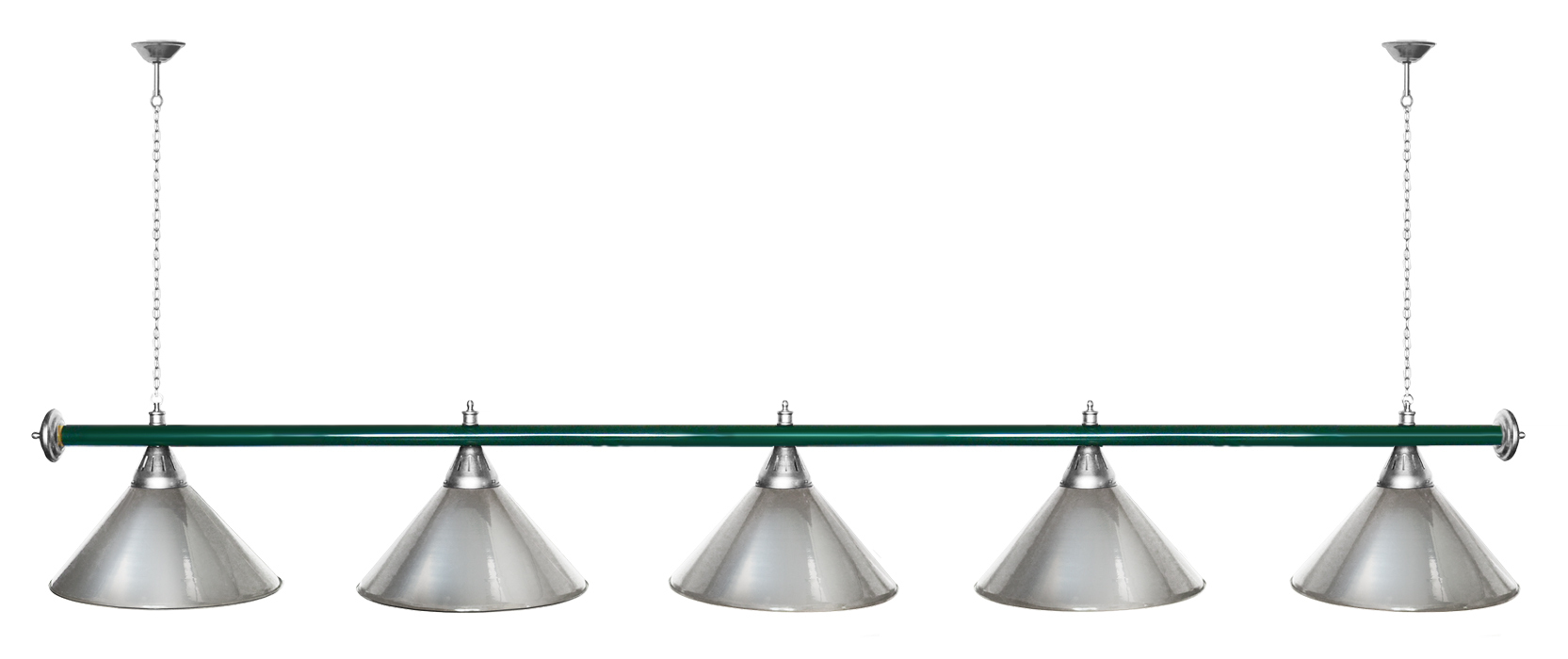 Светильники Startbilliards производства ФС «Горизонт» с 5-ю плафонами комплектуются к столам 10 футов. Укомплектованы цельной металлической штангой с полимерным покрытием. Штанга изготовлена из цельной трубы, что исключает искривление конструкции. Применение керамических патронов #40;Е27#41; увеличивает срок эксплуатации светильника. Металлические плафоны крепятся с помощью зажимных пластин. Длина подвесной цепи 100 см — оптимальное расстояние для расположения источника света над игровым полем стола. В комплект включены две потолочные чашки. Условные схематические обозначения: Н — общая высота светильника / 1420 мм L — общая длина светильника / 2420nbsp;nbsp;мм D — высота плафона / 300 мм d — диаметр плафона / 370 мм C — расстояние между осями / 500 мм Штанга и плафоны поставляются в отдельных упаковках.