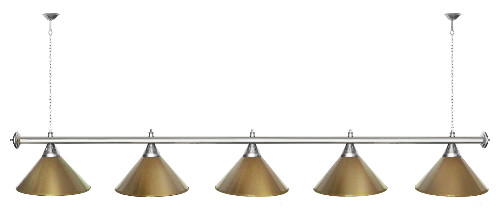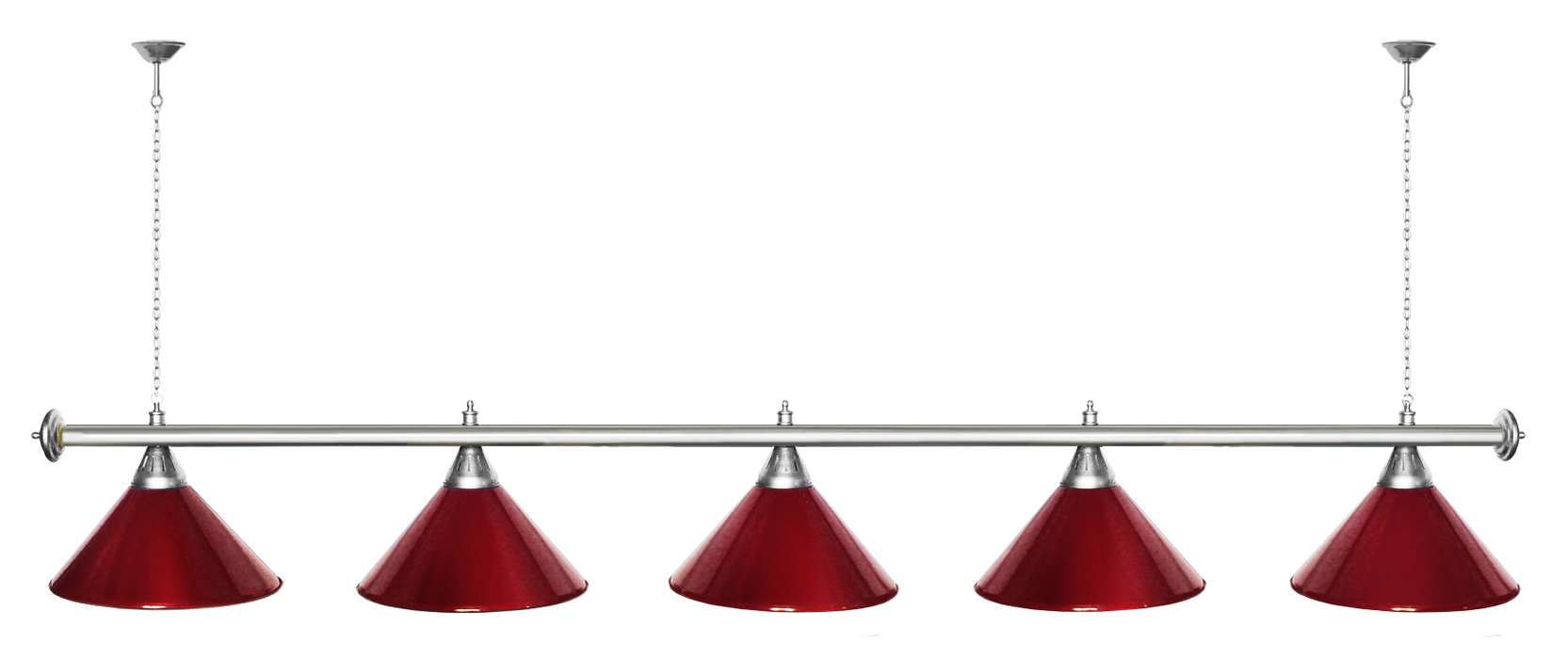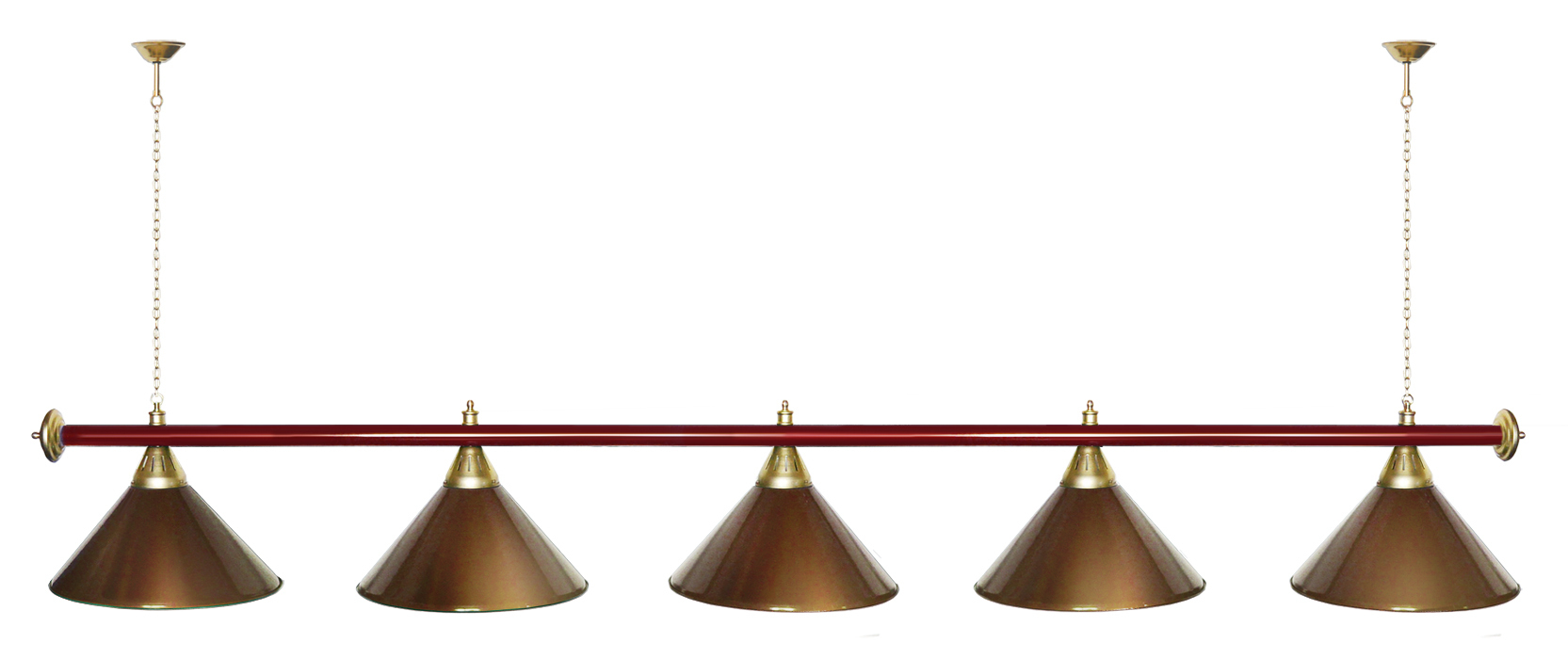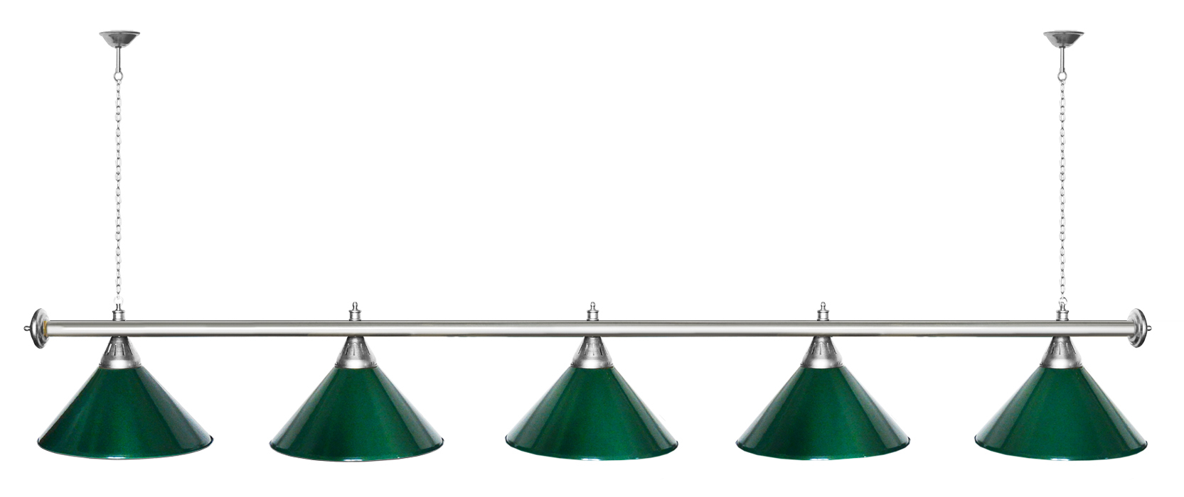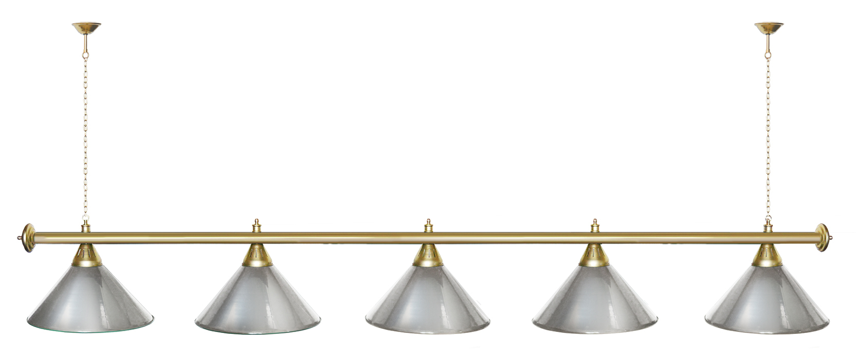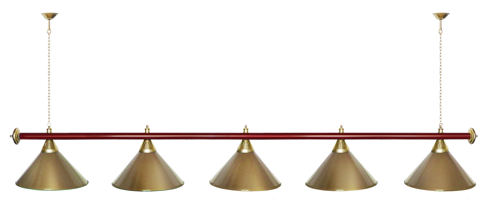 Светильники Startbilliards производства ФС «Горизонт» с 5-ю плафонами комплектуются к столам 10 футов. Укомплектованы цельной металлической штангой с полимерным покрытием. Штанга изготовлена из цельной трубы, что исключает искривление конструкции. Применение керамических патронов #40;Е27#41; увеличивает срок эксплуатации светильника. Металлические плафоны крепятся с помощью зажимных пластин. Длина подвесной цепи 100 см — оптимальное расстояние для расположения источника света над игровым полем стола. В комплект включены две потолочные чашки. Условные схематические обозначения: Н — общая высота светильника / 1420 мм L — общая длина светильника / 2420nbsp;nbsp;мм D — высота плафона / 300 мм d — диаметр плафона / 370 мм C — расстояние между осями / 500 мм Штанга и плафоны поставляются в отдельных упаковках.