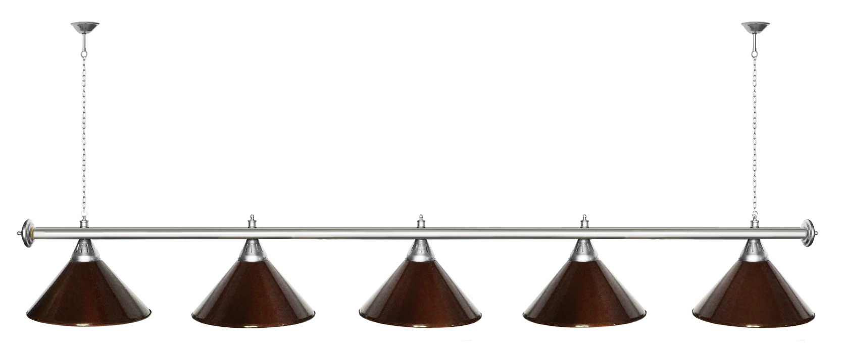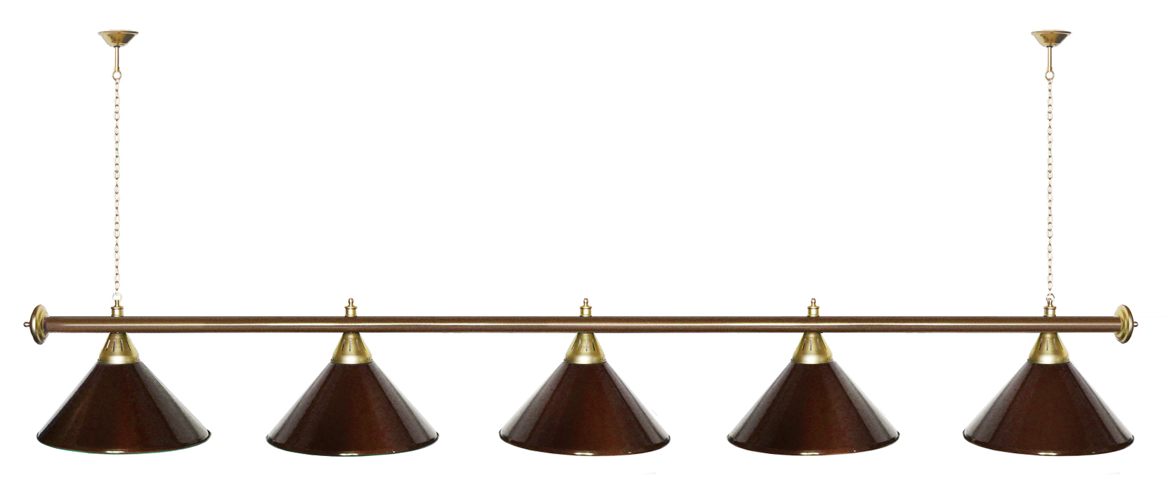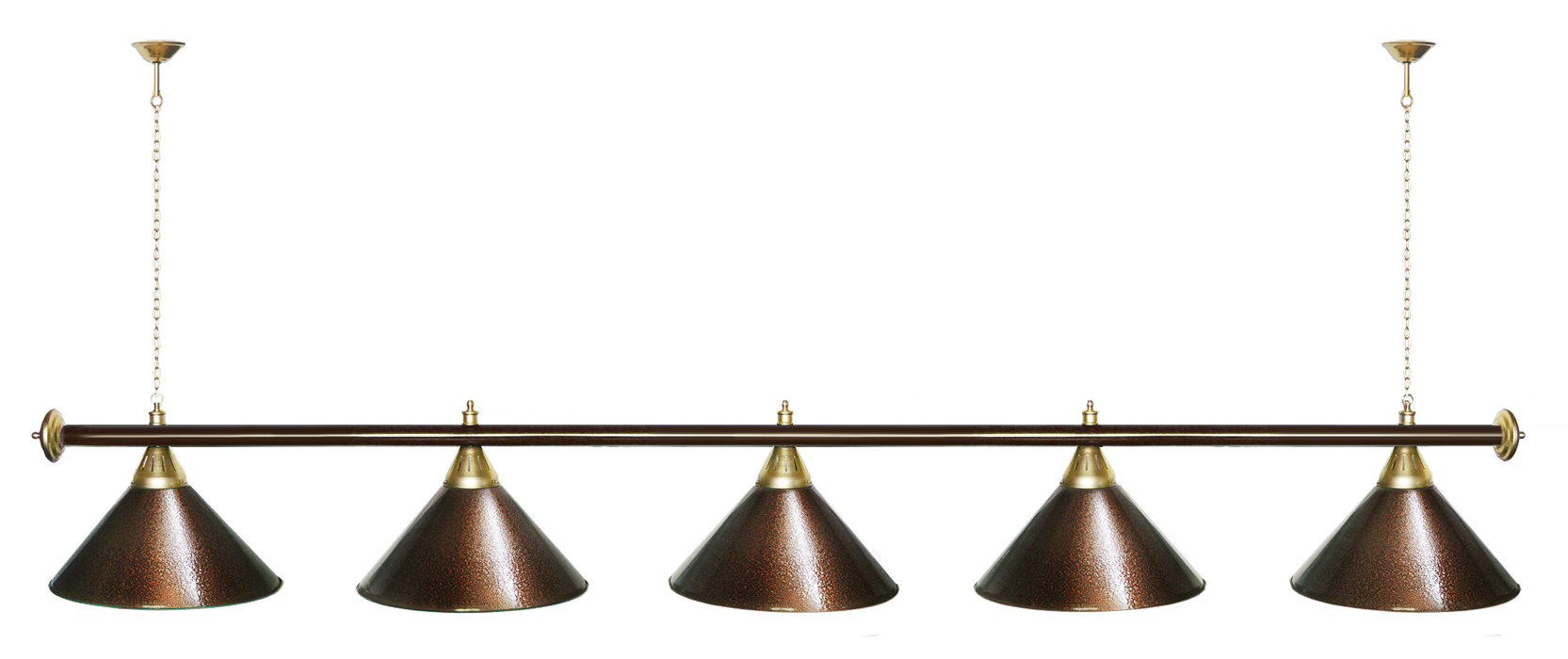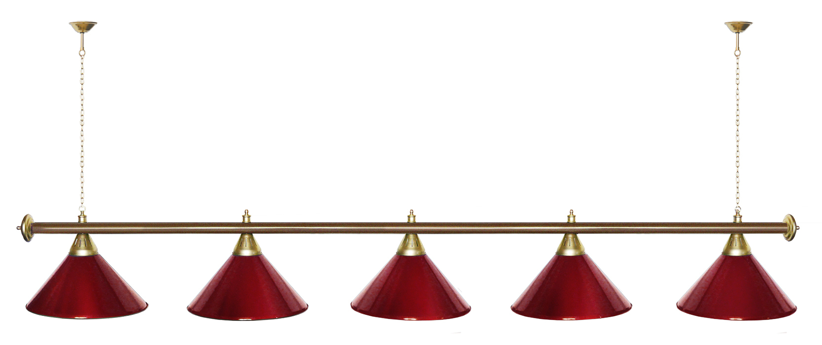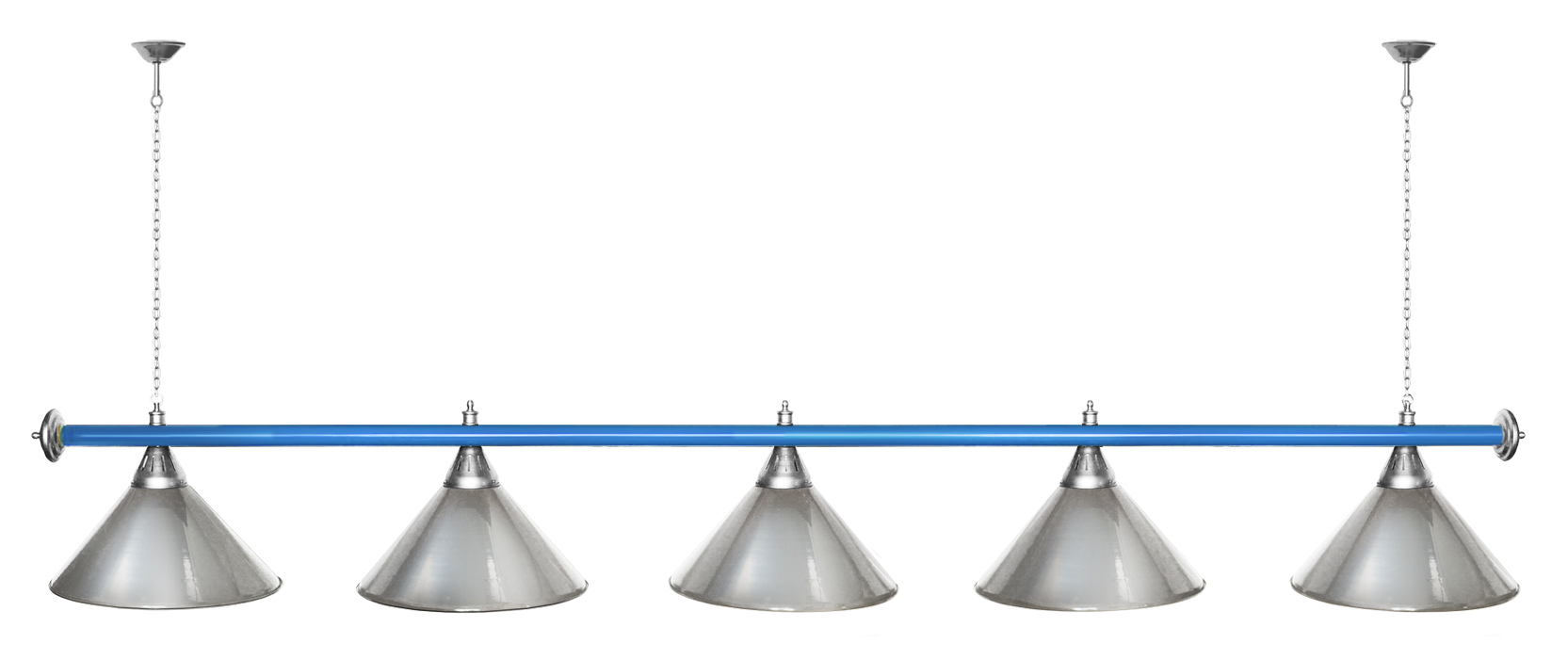 Светильники Startbilliards производства ФС «Горизонт» с 5-ю плафонами комплектуются к столам 10 футов. Укомплектованы цельной металлической штангой с полимерным покрытием. Штанга изготовлена из цельной трубы, что исключает искривление конструкции. Применение керамических патронов #40;Е27#41; увеличивает срок эксплуатации светильника. Металлические плафоны крепятся с помощью зажимных пластин. Длина подвесной цепи 100 см — оптимальное расстояние для расположения источника света над игровым полем стола. В комплект включены две потолочные чашки. Условные схематические обозначения: Н — общая высота светильника / 1420 мм L — общая длина светильника / 2420nbsp;nbsp;мм D — высота плафона / 300 мм d — диаметр плафона / 370 мм C — расстояние между осями / 500 мм Штанга и плафоны поставляются в отдельных упаковках.