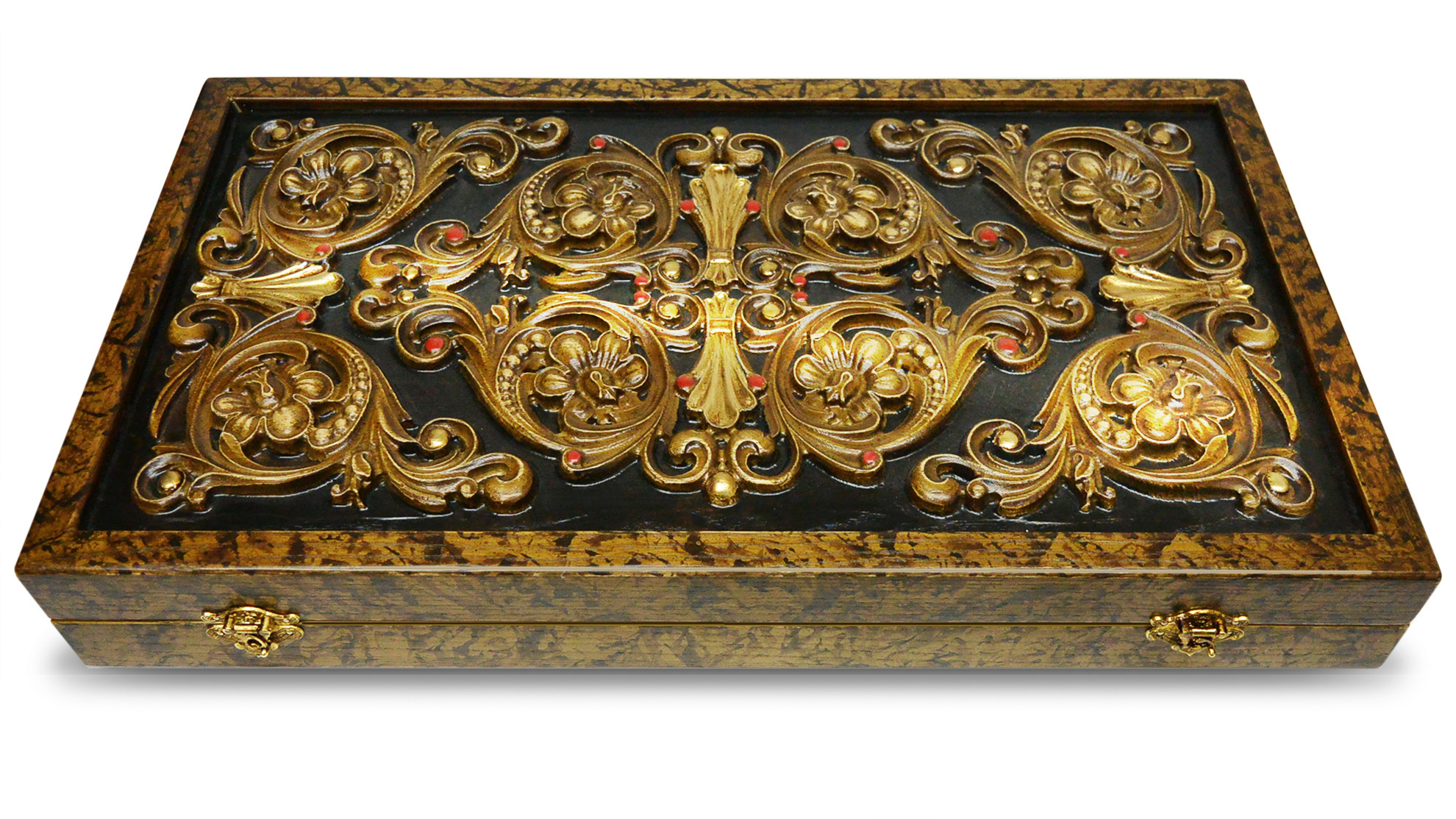 Нарды – одна из самых популярных игр в России, наряду с шашками, шахматами и домино. Мало кто знает, что этой игре уже более 5000 лет, а самую древнюю из досок для игры нашли в Малой Азии около 3000 лет до н. э. Данная модель относится к категории элитного товара и предназначена для настоящих ценителей не только игры в нарды и шашки, но иnbsp;nbsp;внешнего содержания. Нарды изготовлены из массива ясеня. Орнамент на крышке и внутри выполнен в ручную с особой скурпулезностью. Резные элементы, придающие особый шик, будут популярны во все времена и превращают модель в семейную реликвию. Привилегия данной модели в том, что она совмещает в себе нарды и шашки.Высокое качество материалов, применяемых в модели, на долго сохранит презентабельный внешний вид. Надежная позолоченная фурнитура, отдельный ложемент для хранения фишек.