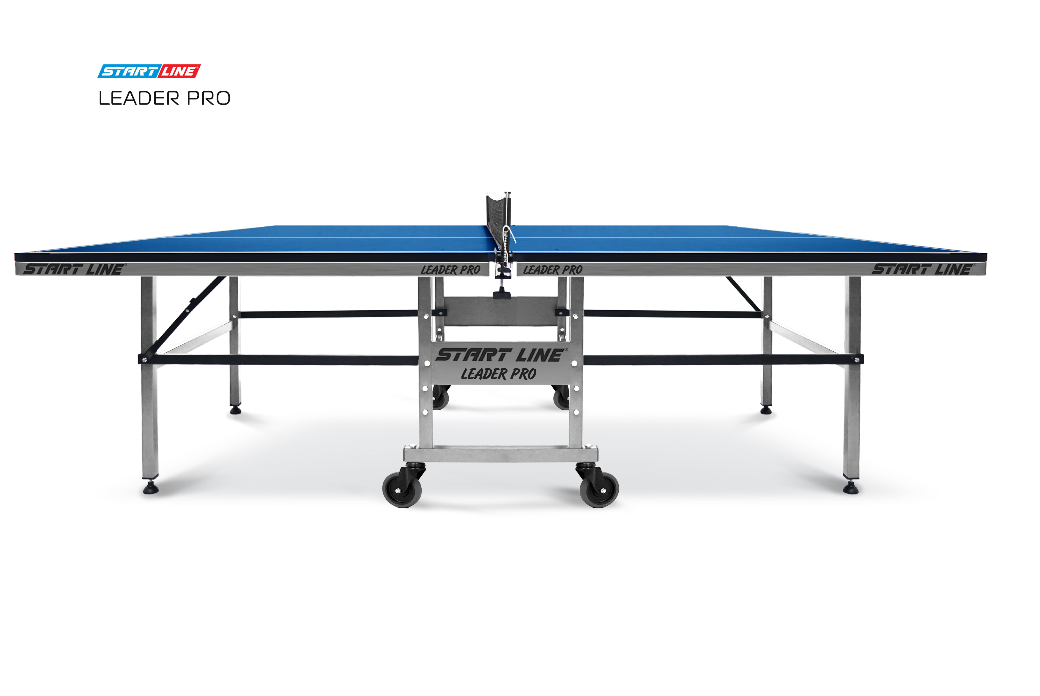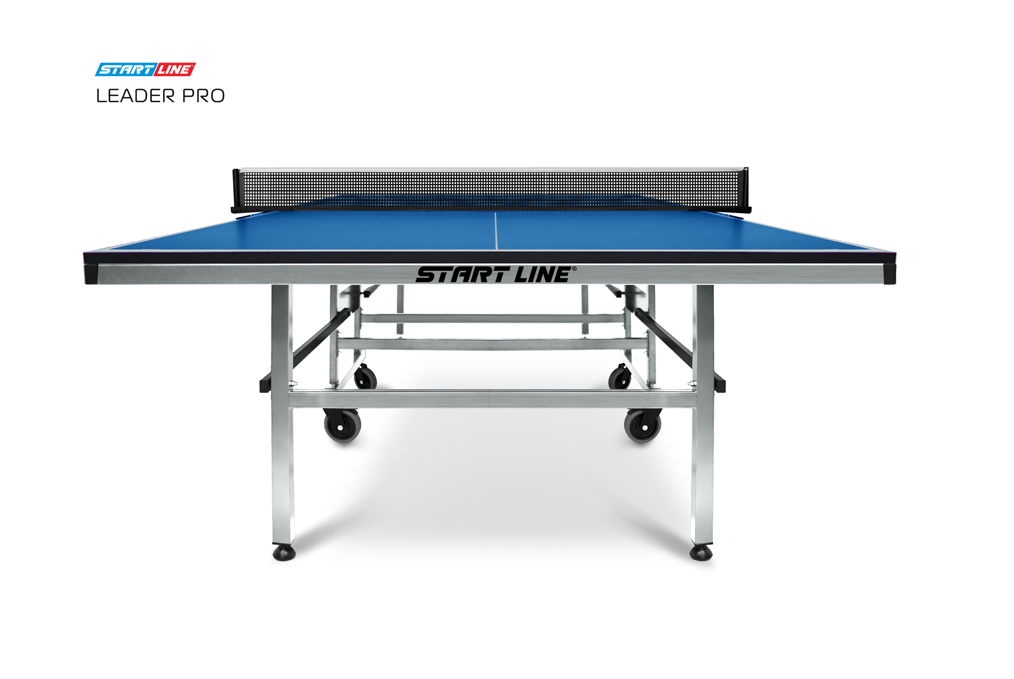 Теннисный стол Leader PRO - профессиональные игровые характеристики и качество, проверенное временем в классическом дизайне! Размер стола в рабочем положении: 274 см в длину, 152,5 см в ширину и 76 см в высоту, что соответствует стандарту ITTF. Стол укомплектован столешницей из прочного материала МДФ. Толщина столешницы 25 мм обеспечивает предсказуемость и точность отскок мяча, что позволяет использовать стол для тренировочных занятий в спортивных клубах. Многослойная система покраски защищает столешницу от появления трещин и сколов, а кромка из ПВХ толщиной 0,45 мм и металлический кант 40 мм с полимерным покрытием продлевают срок службы стола даже в условиях интенсивной эксплуатации. Усиленная рама и металлические раскосы с фиксаторами обеспечивают идеальную стабильность во время игры и тренировок. Модель Leader PRO оснащена обрезиненными колесами на подшипниках диаметром 100 мм, что гарантируют плавное перемещение стола. Все колеса маневровые, благодаря чему транспортировка стола не вызовет трудной даже у подростка. Два колеса оборудованы тормозом, они надежно фиксируют положение стола. Благодаря удобной системе трансформации стол просто и компактно складывается, занимая минимум места при хранении. Конструкцией предусмотрен режим одиночной игры - PLAYBACK. Лаконичный дизайн и высокие игровые характеристики стола Leader PRO делают его прекрасным выбором как для самостоятельных тренировок, так и для комплектации спортивных клубов. Модель Leader PRO - идеальное сочетание стоимости и качества в классическом дизайне, которое смогут по достоинству оценить как любители, так и профессионалы.