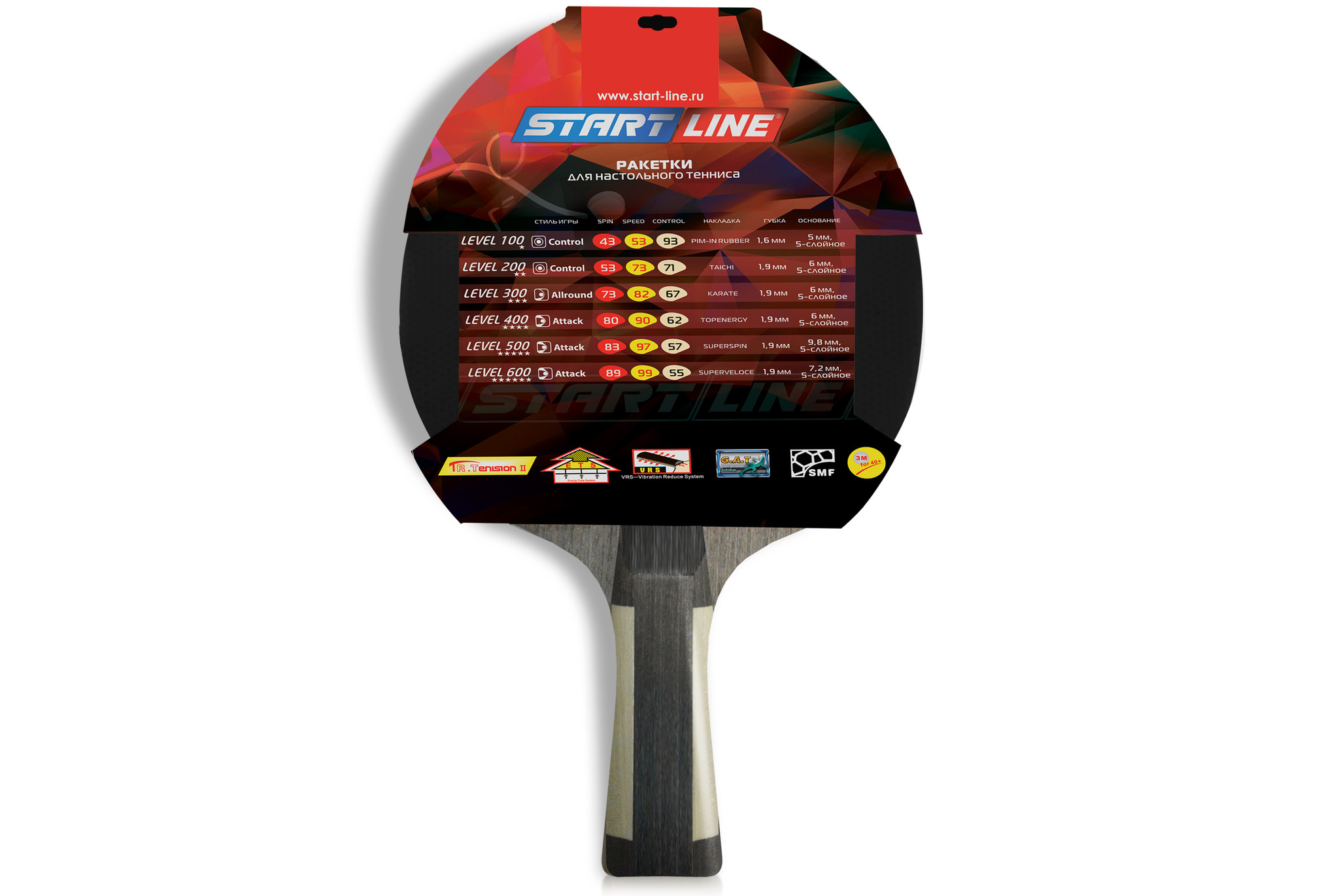 Ракетка для настольного тенниса Level 500 соответствует высокому современному стандарту качества, имеет обновленный дизайн, а также улучшенные технологические и игровые характеристики. В производстве ракеток Level 500 применены новейшие технологии: - Технология натяжения - TR. Tension Il Technology Благодаря применению модифицированных полимерных материалов здесь технология натяжения доведена до совершенства. При игре резина хорошо поглощает атакующие удары мячей, улучшены внутренняя энергия резины и губки. Ракетка Level 500 отличается высокой скоростью и хорошим вращением. - Технология снижения вибрации - VRS-Vibration Reduce System. Эта технология позволяет гасить колебания и вибрации ракетки во время игры, равномерно распределяя ее по поверхности, что способствует улучшению контроля. - Технология ETS: Energy Tube System Благодаря плотному материалу и добавлению специальной древесины в сердцевину основания ракетки, модификация Energy Tube System придает силу и скорость ракетке, эти составляющие незаменимы при атакующей игре. - Технология поглощения - Gecko Adsorption Technology Эту технологию применяют при производстве резиновой поверхности ракетки. Так, на самой поверхности резины образуется множество выходных отверстие #40;как губка#41;, которые позволяют задержать мяч на резине. Благодаря этой технологии можно свободно контролировать мяч, его скорость и вращение. - Технология симметрии - Symmetrical Microcellular Foam Technology. Благодаряnbsp;nbsp;применению симметричного мелкопористого пенопласта, ракетка отличается эластичностью, легкостью и хорошим энергопоглощением.