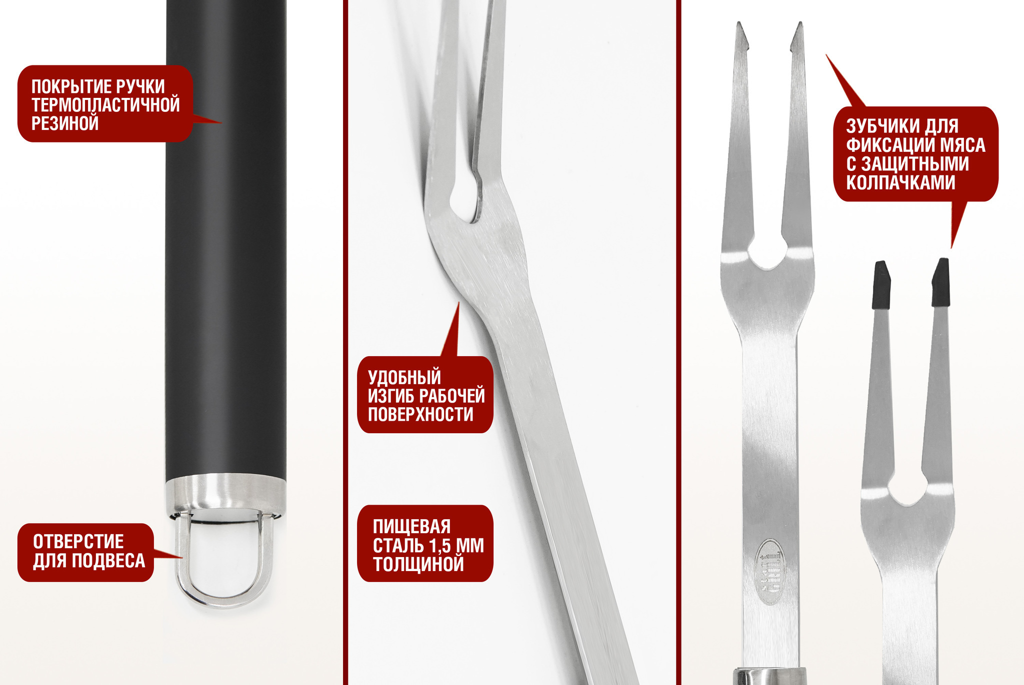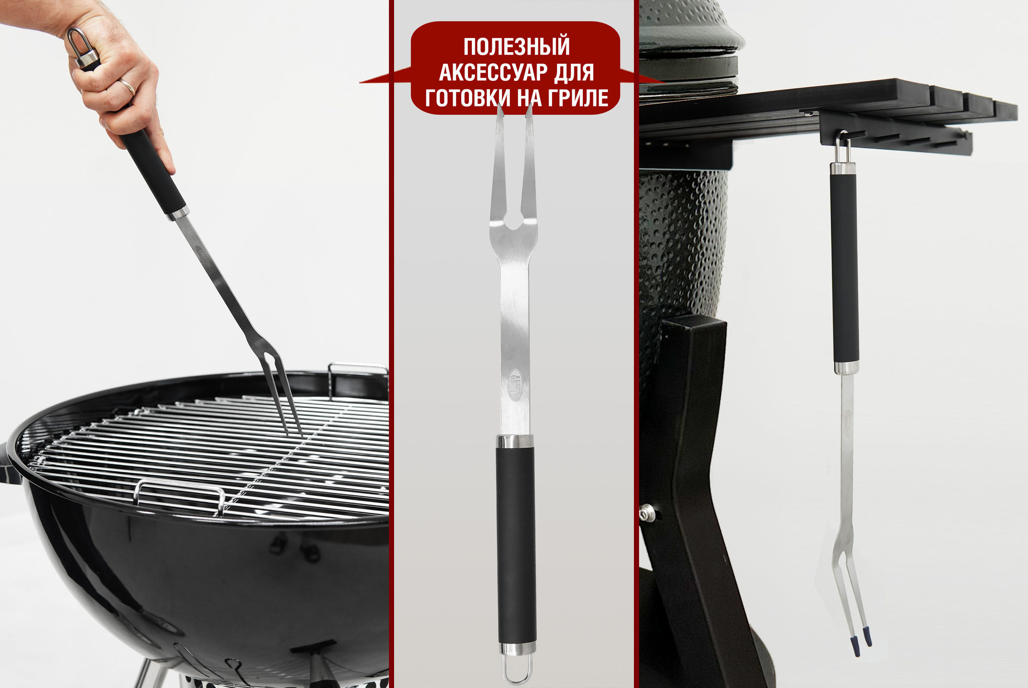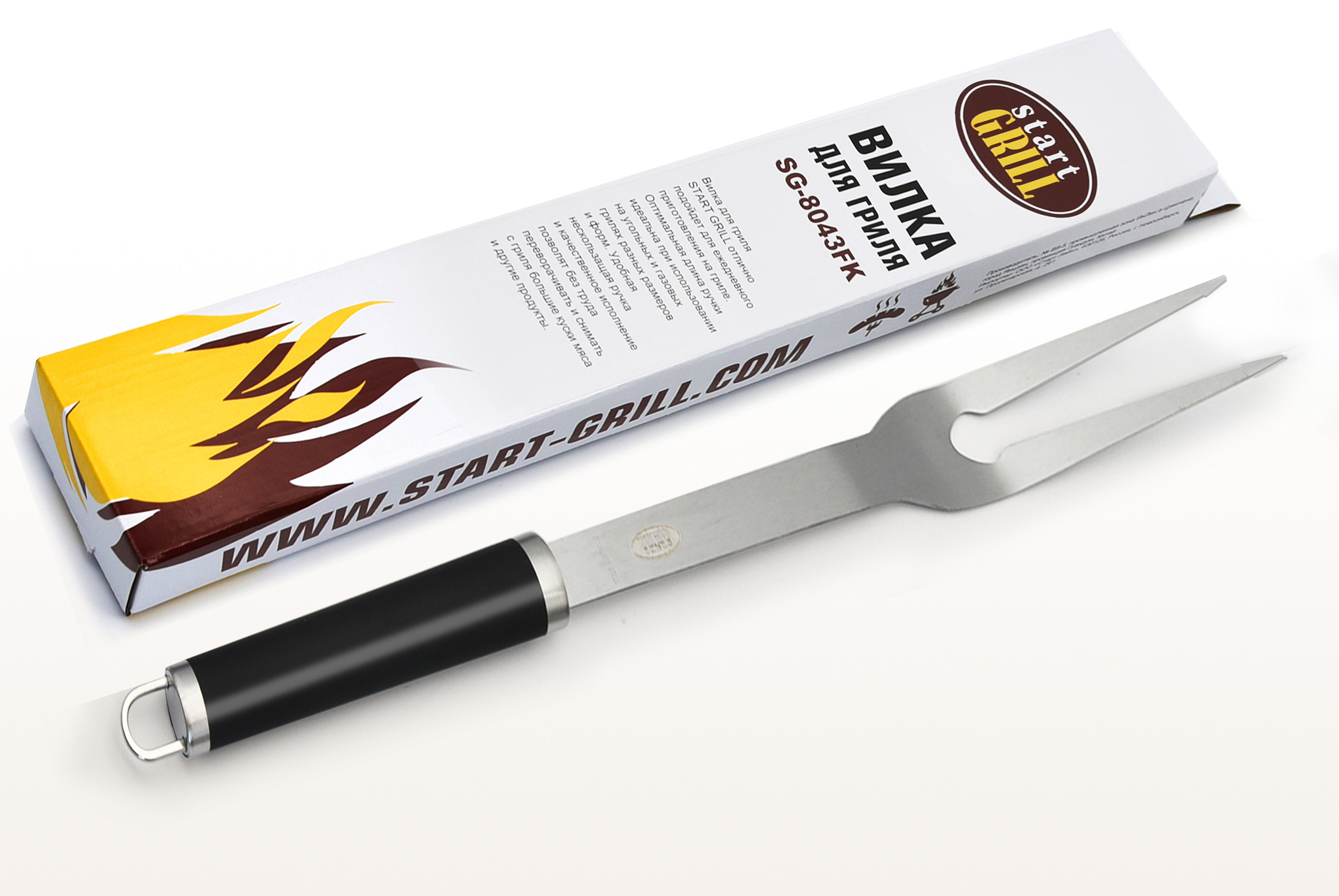 Вилка для гриля START GRILL отлично подойдет для ежедневного приготовления на гриле. Оптимальная длина ручки идеальна при использовании на угольных и газовых грилях разных размеров и форм. Удобная нескользащая ручка и качественное исполнение позволят без труда переворачивать и снимать с гриля большие куски мяса и другие продукты